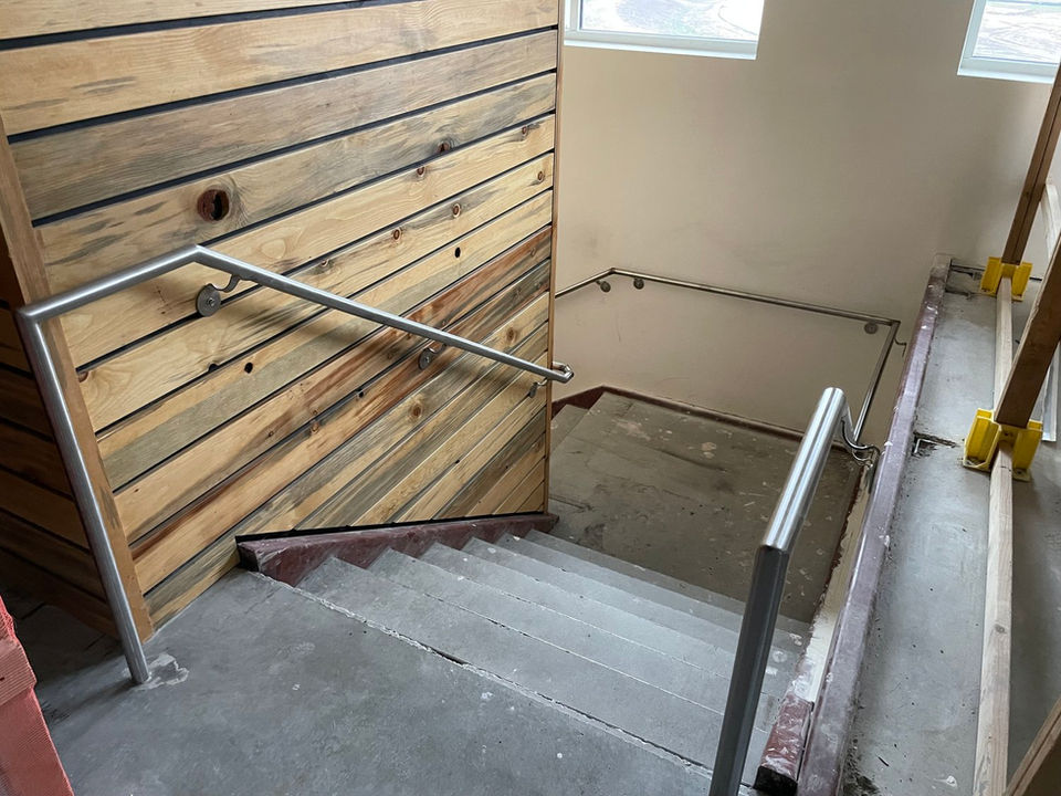 This sturdy stainless steel handrail system was designed for safety and functionality in a high-traffic stairwell. The sleek, modern design is mounted securely to the wall with custom-fabricated brackets, ensuring durability and compliance with accessibility standards. The stainless steel finish provides long-lasting corrosion resistance, making it an excellent choice for both commercial and industrial spaces.